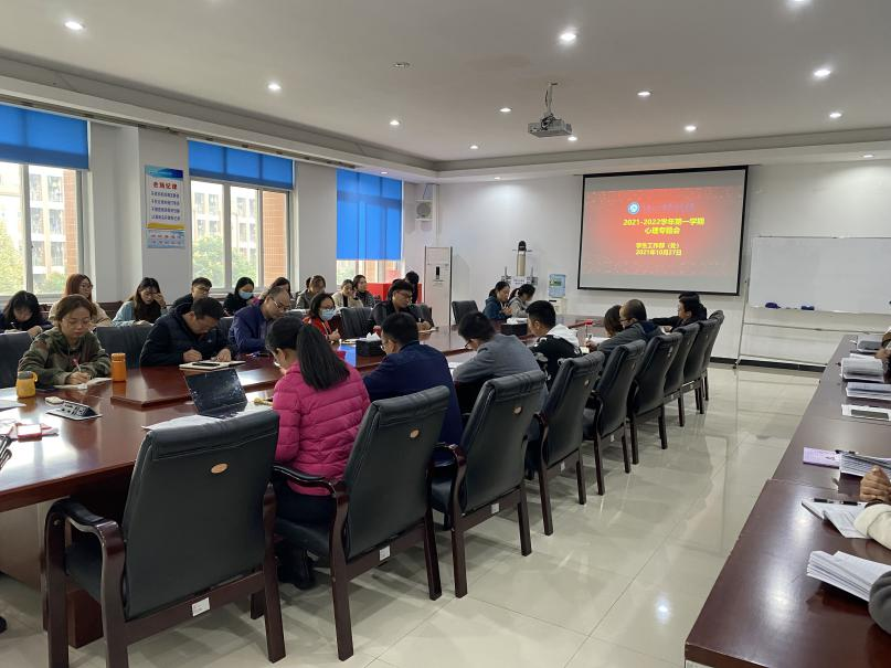 为更好解决辅导员在做学生心理工作中遇到的问题,加强各部门之间的紧密联系,2021年10月27日大学生心理健康教育指导中心在主校区A401室召开了心理工作专题会议,会议由杨清老师主持,学生处刘妮娅处长、各二级学院党委副书记、学工办主任、辅导员、班主任、心理中心专职教师参加此次会议。
