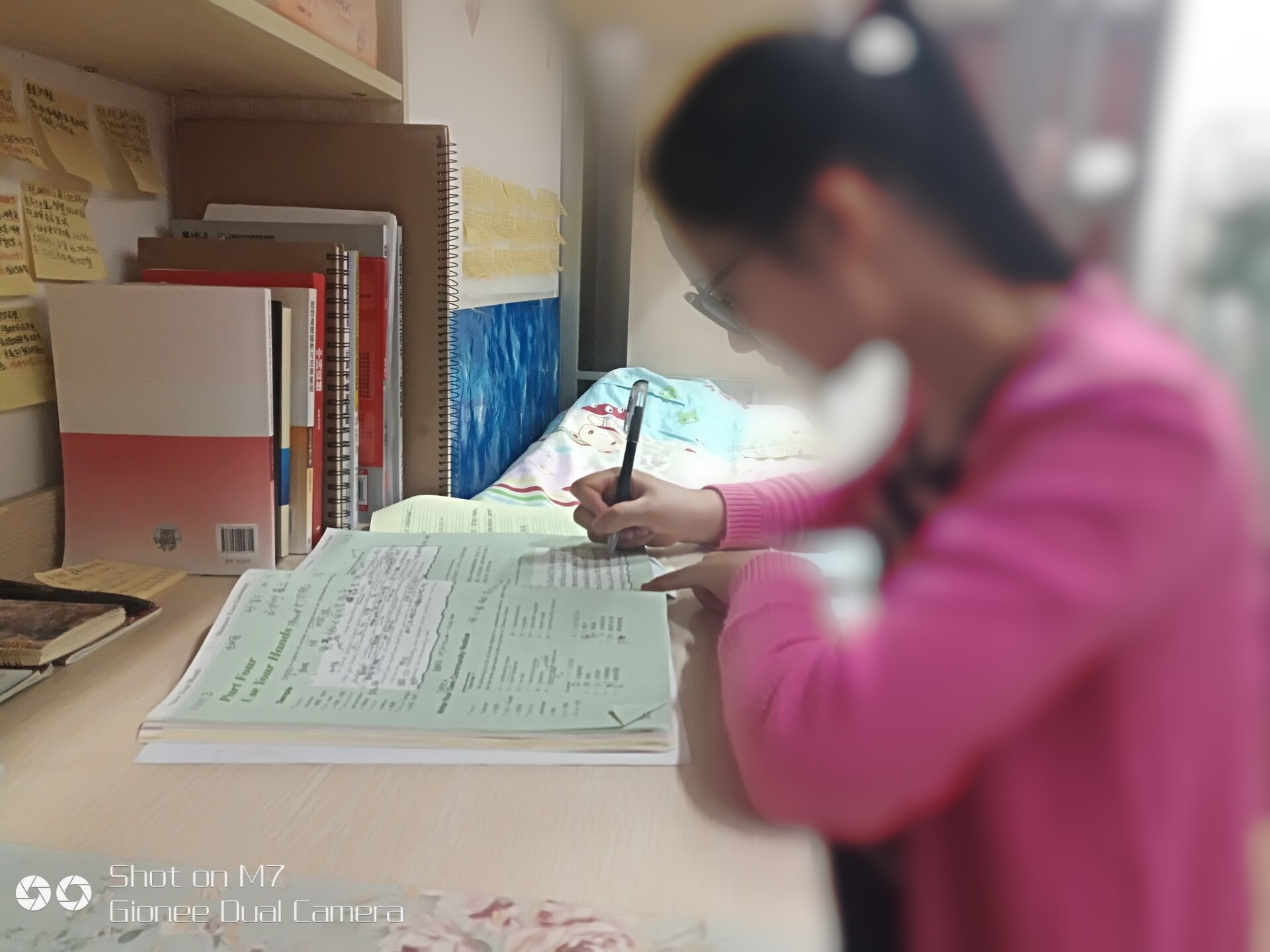 求学的过程,有许许多多的艰难困苦,记得有一次因连续下雨河流量大,父亲背着她到岸上,她边看着父亲边赶路,独自一人走着遥远的山路赶往学校,但这些困难并没有把她打倒,反而这些困难与挫折使她越挫越勇。通过不断的刻苦努力,她考上了县里最好的高中,上学期间她边学习边兼职,放学的钟声一响,她就到赶往学校食堂和阿姨们一起干活,利用周末时间去帮人家打扫卫生、洗衣等等,她边学习边兼职,但也不曾落下功课,每次周末兼职下班回来宿舍总是精疲力尽,但她依然坚持完成功课才休息,有时候实在太累,太困才趴在桌上小憩一下,因为太累醒来已经是凌晨三四点,然而他依旧继续完成剩下的功课。
