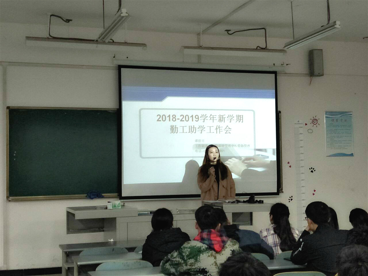 新学期开始,澳门正规电子游戏平台召开2018-2019年新学期勤工助学工作会,会议由学院资助管理中心谭舒月老师主持召开,全体勤工助学岗位学生准时参会。