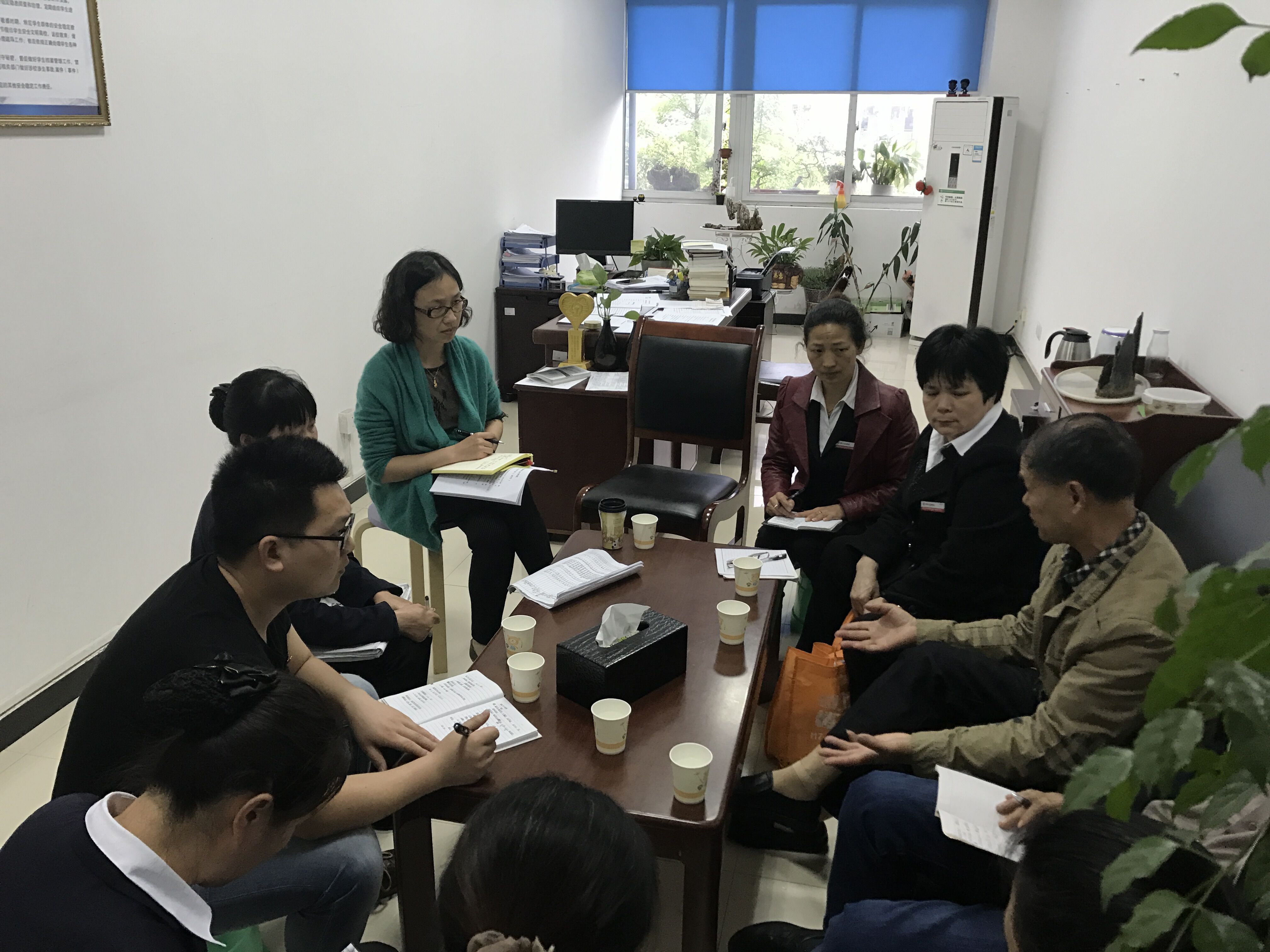 最后,刘处长对五月的宿舍管理工作进行了布置,要求生活辅导老师深入的了解学生,熟悉学生,更加关注特群学生。只有通过大家的督促、公示、反馈才能把宿管管理工作做的更细,做得更好。