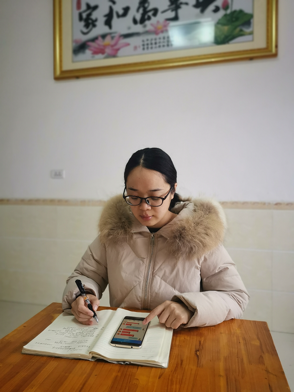 阳阳老师身在全国疫情重灾区——湖北荆州,因身怀有孕和体质的原因医生多次告诫要注意饮食规律和远离电脑、手机辐射源。但面对严重的疫情,温老师心系学生安危,每日关注学生身体情况,按时完成学校要求的健康打卡,无论工作到晚上十二点还是每日无数次联系学生、家长。没带电脑,办公不便,就手机不离手。家人有时不太理解,抱怨到:天天低着头,抱着手机,辐射大,对身体不好;家人多次喊阳阳老师过去吃饭,她都耐心说"等一下,我需要再联系几个学生。边吃饭边工作成为了一名“孕妈”老师的生活常态,甚至有一次把手机掉进了碗里。