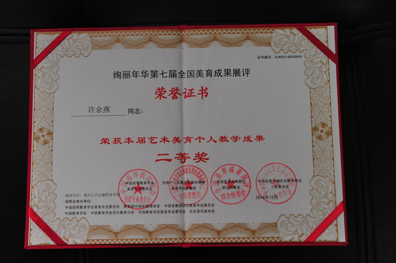 全国美育成果展是目前国内唯一的以推动美育为目的的权威大赛。本次参赛在学院领导的关心支持、艺术类教师的认真指导和参赛学生的共同努力下,最终我院荣获 “全国高校艺术美育教学成果二等奖”1个;学生作品荣获一等奖4个、二等奖8个、优秀奖3个;许余燕老师荣获“优秀组织奖”,“优秀指导教师奖”和“艺术个人教学成果二等奖”。此次参赛不仅展示了我院人文艺术系美育教学成果,同时更好地提高了学生的专业技能水平。