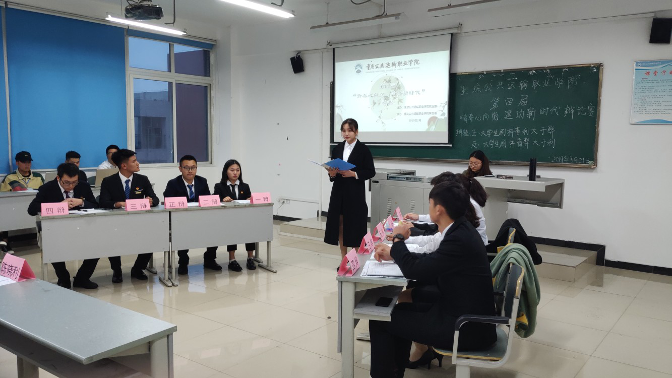为推进学生职业素质,锻炼学生的思维能力、思辩能力和口头表达能力,增强思想交流,加强校园文化建设,营造浓厚学习氛围,搭建展现自我的平台,进一步增强学生对学院的认同感与归属感,促进学生职业素质提升。2019年3月21日19:00整,由学院团委主办,选学生会承办的“青春心向党,建功新时代”辩论赛电子游戏在D501、502、503、504四个教室举办。此次参加比赛的队伍为:轨道车辆与机械系、运输贸易系、三系联合、轨道电气系六个系组成的八支队伍。开展第一场论辩以“大学生刷抖音利大于弊,还是弊大于利”为主题的辩论赛。