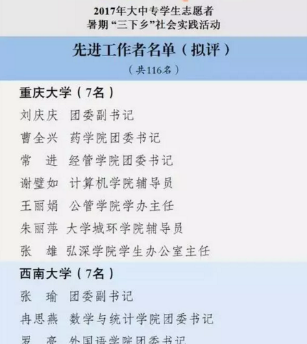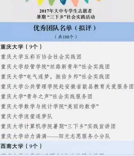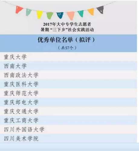 2017年重庆市大中专学生志愿者暑期“三下乡”社会实践活动圆满的结束。