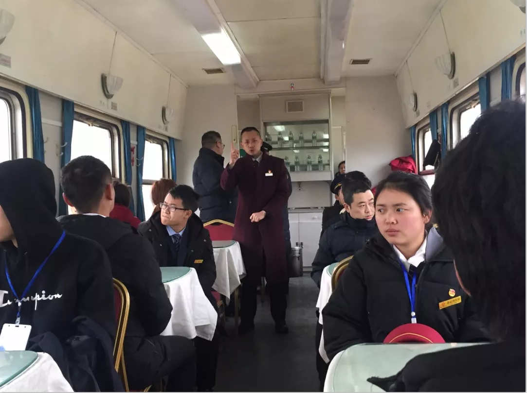 从菜园坝车站上车,招生就业处黎光全、陈香和王曾三位老师,检查督促我们的工作,虽然发车时间已经接近23点,黎老师却让我们看到了一个老铁路人的专注与热情,检查工作的同时现场教学,让我们直观的学习列车和乘务知识。