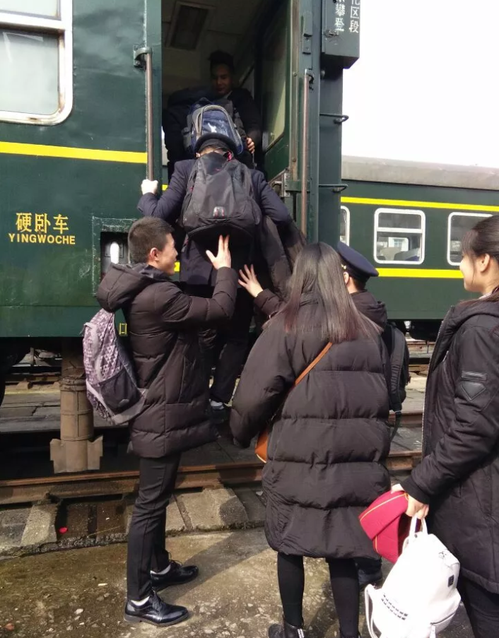 春运的辛苦只有参加过的志愿者们才能亲自体会到,虽然在火车上作息时间很不规律,但是没有听到一个志愿者有一点抱怨的声音,再累再辛苦志愿者们的脸上始终洋溢着热情的笑容。到福州的时候K4389的志愿者们迎来了第一批乘客,看着他们拿着大包小包的向列车奔跑过来的时候,志愿者们挺胸抬头,用饱满的热情面对每一位乘客,志愿者们一边温馨的提醒乘客注意安全,一边检查乘客的车票,保证每一位乘客能顺利的上车。