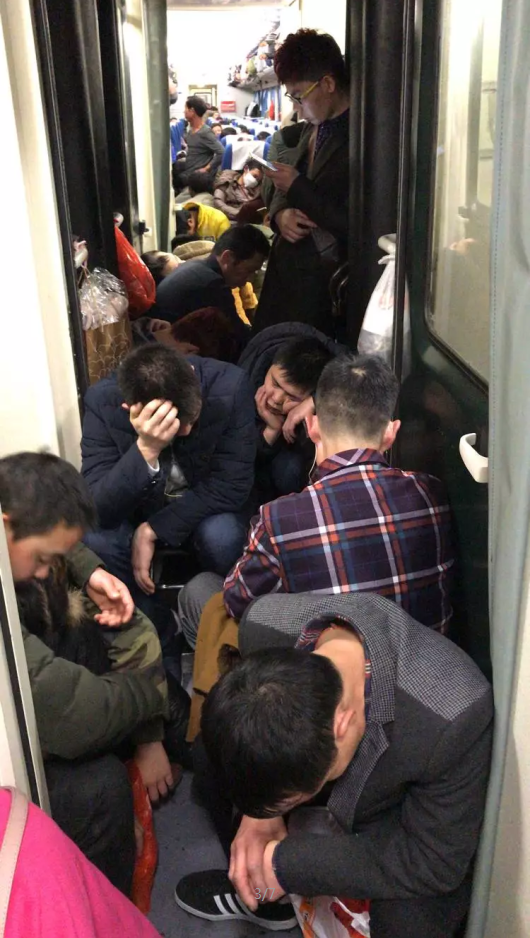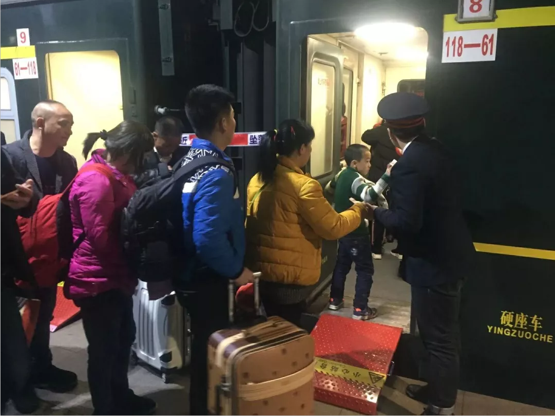 背着沉甸甸的背包,提着笨重的箱子,谁都想补一张卧铺票,奈何一票难求,一家四口都没买到座位只能在车厢连接处相依偎。行李架上,过道上,洗脸台上,床位下,车门后都堆满了行李,一年到头就盼着过年回去和家人团圆,想把外面吃过的好吃的带回去给小孩和老人,难免行李过多。把乘客的行李安排到位后我走进乘务室,突然间觉得这里面的空间真大,这一刻觉得自己是幸福的,要是条件允许的话,我愿意让出来给他们坐,但是我知道这是不行的。