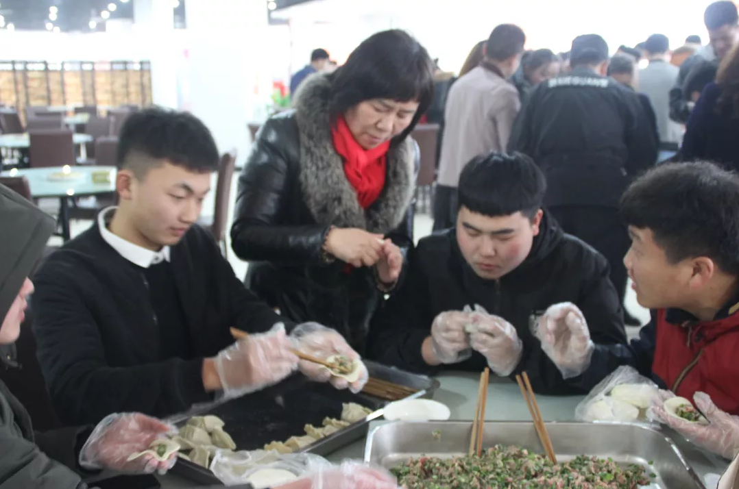 食堂里更是年味十足,红灯笼、新春对联、福字纷纷上墙,一大早工作人员就来到食堂开始布置,准备饺子皮、饺子馅儿、水果、花生、瓜子等,为留校同学们举办“包饺子・贺新春”联欢活动,给同学们营造家的感觉。同时,也让泰国留学生们进一步体验中国传统文化,感受浓浓的中国情,体味浓郁的中国味。彭书记细心的教同学们包饺子,话家常,现场欢聚一堂,相互问候,恭贺新春。