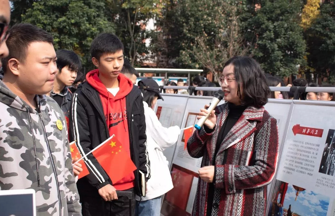 为庆祝中华人民共和国成立70周年,加强学生爱国主义教育,弘扬爱国主义核心价值观,提升学生的思想境界,2019年12月5日中午12点澳门正规电子游戏平台在浮雕广场举办了由中共重庆市江津区委宣传部、重庆市江津区文化和旅游发展委员会、南昌八一起义纪念馆、重庆市江津区陈独秀旧居陈列馆主办的爱国宣传展《永远的旗帜》。团委彭余老师、各系学生组织干部、各系学生代表及相关人员共同参与了宣传展览。