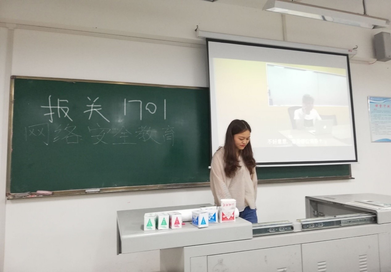 随着网络的广泛应用,为增强学生的网络安全防范意识,提高学生的网络安全防范能力,全面普及网络安全常识。2018年9月16日星期天,报关与国际货运1701班在B408教室开展网络安全教育主题班会。