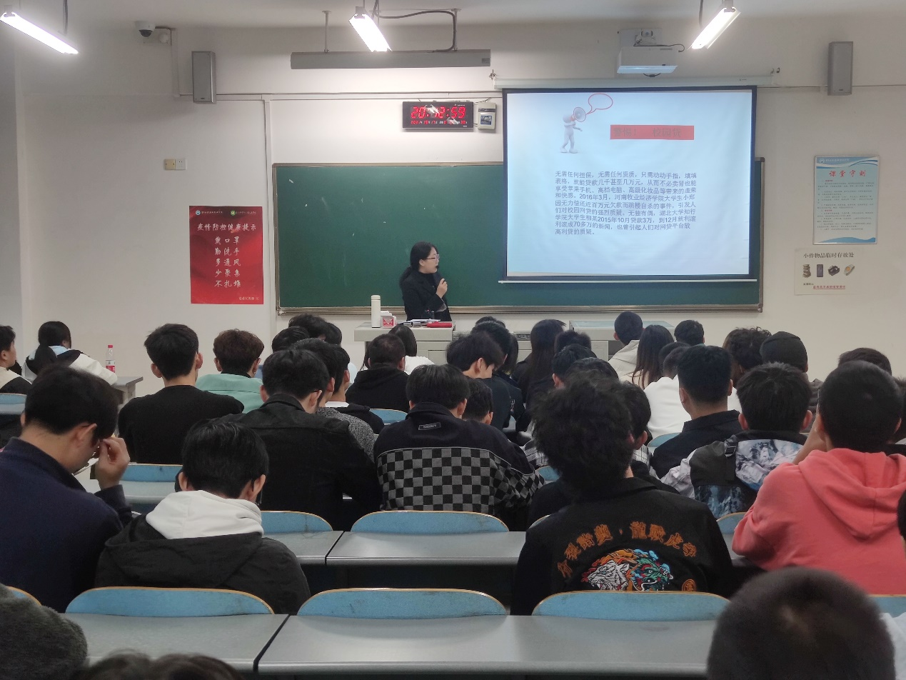在班会中辅导员刘仙老师通过与实际案例相结合的方式向大家点明网贷、网赌对我们大学生学业和生活的危害。同时刘仙老师指出了网贷、网赌的常规套路和方法,并以此提醒我们预防网赌网贷,还要树立正确合理的消费观念,抵制片面追求物质享受、盲目从众的攀比心理。