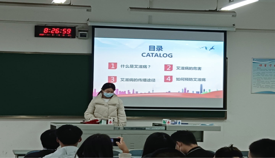 为了加强同学们预防艾滋的安全意识,强调身体健康、生命安全第一,轨道交通学院车辆应用技术2105班于2021年11月5日早自习时间在B503开展“珍爱生命,预防艾滋”生命健康教育主题班会活动。