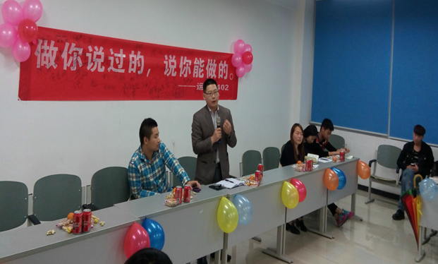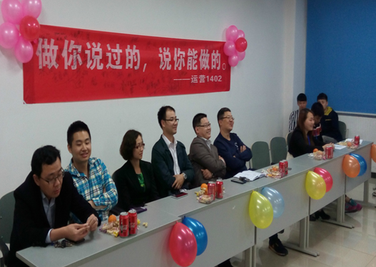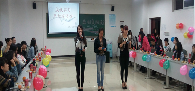2015年4月22日19时,由运输贸易系城市轨道交通运营管理专业1402班主办的“成铁实习分享”主题班会在教学楼D503准时召开。亲临班会的有:学院副院长刘畅、学生处刘妮娅处长、学院办公室王欣主任、运输贸易系赵柱文主任、运输贸易系党支部曾庆东书记、运输贸易系办公室邱峰主任以及辅导员秦英老师。