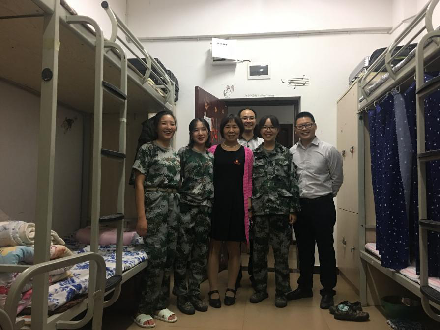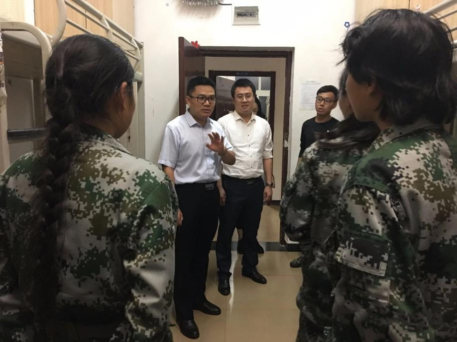 2018年9月22日上午,澳门正规电子游戏平台2018级全体师生,从古剑山、白市驿军训基地启程,搭乘学院渝约公交,顺利返回学院;当晚军训合练结束后,院长赵月望、党委书记彭超、常务副院长李海峰、副院长刘畅等领导老师,在各系部负责人的陪同下走访了新生公寓,并对他们进行了亲切慰问。