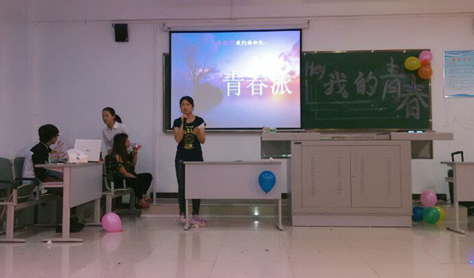 2015年4月26日晚上7点30运输贸易系城运1402班在教学楼C205举行“正青春”主题班会,班会邀请贸易系团总支组织部共同参与。