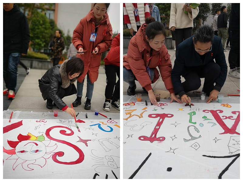 绘“艾”画卷签名,在画卷上添上一笔属于自己心中的防艾颜色以及自己心中的防艾图形。消除歧视,正视艾滋。