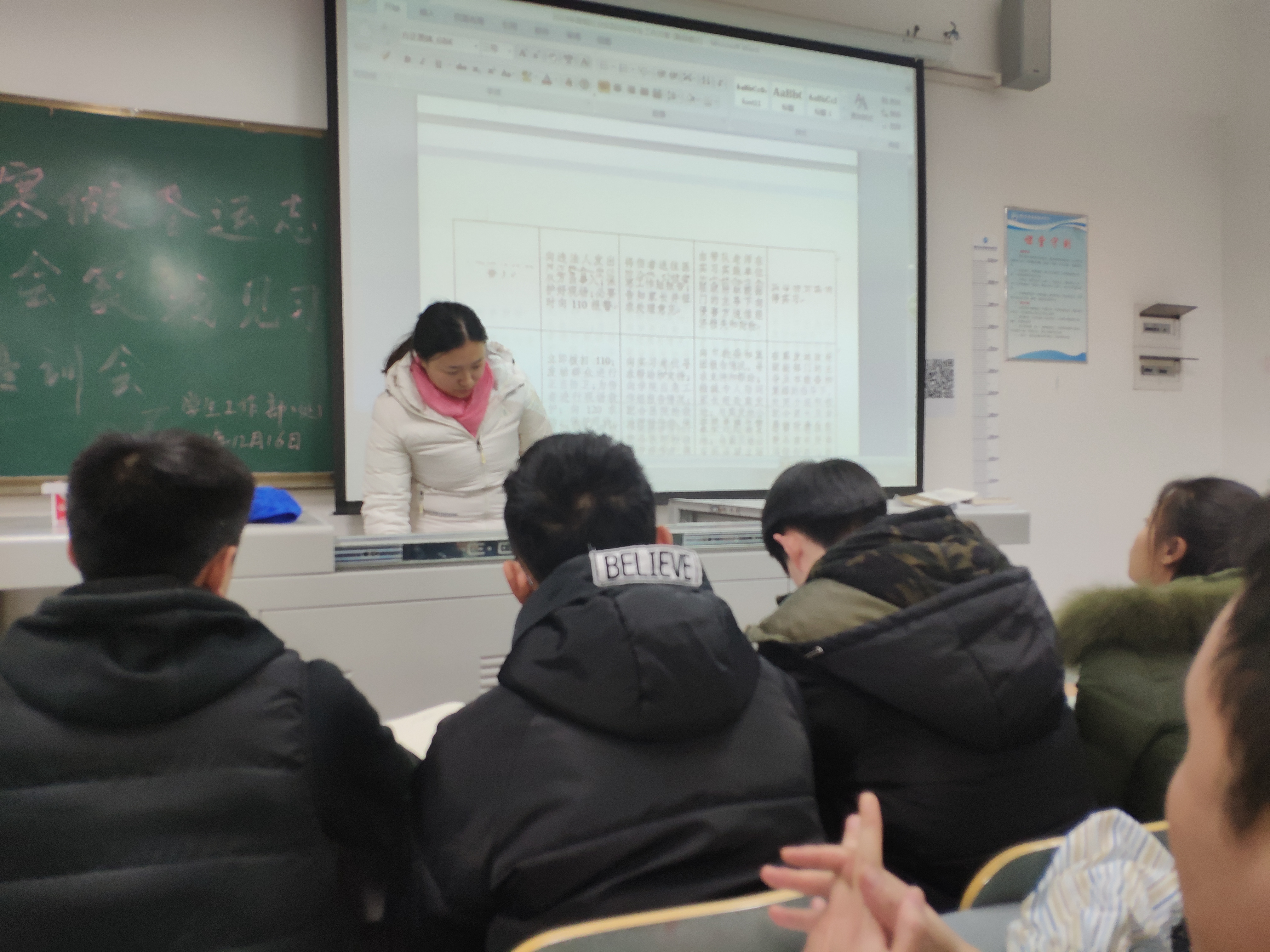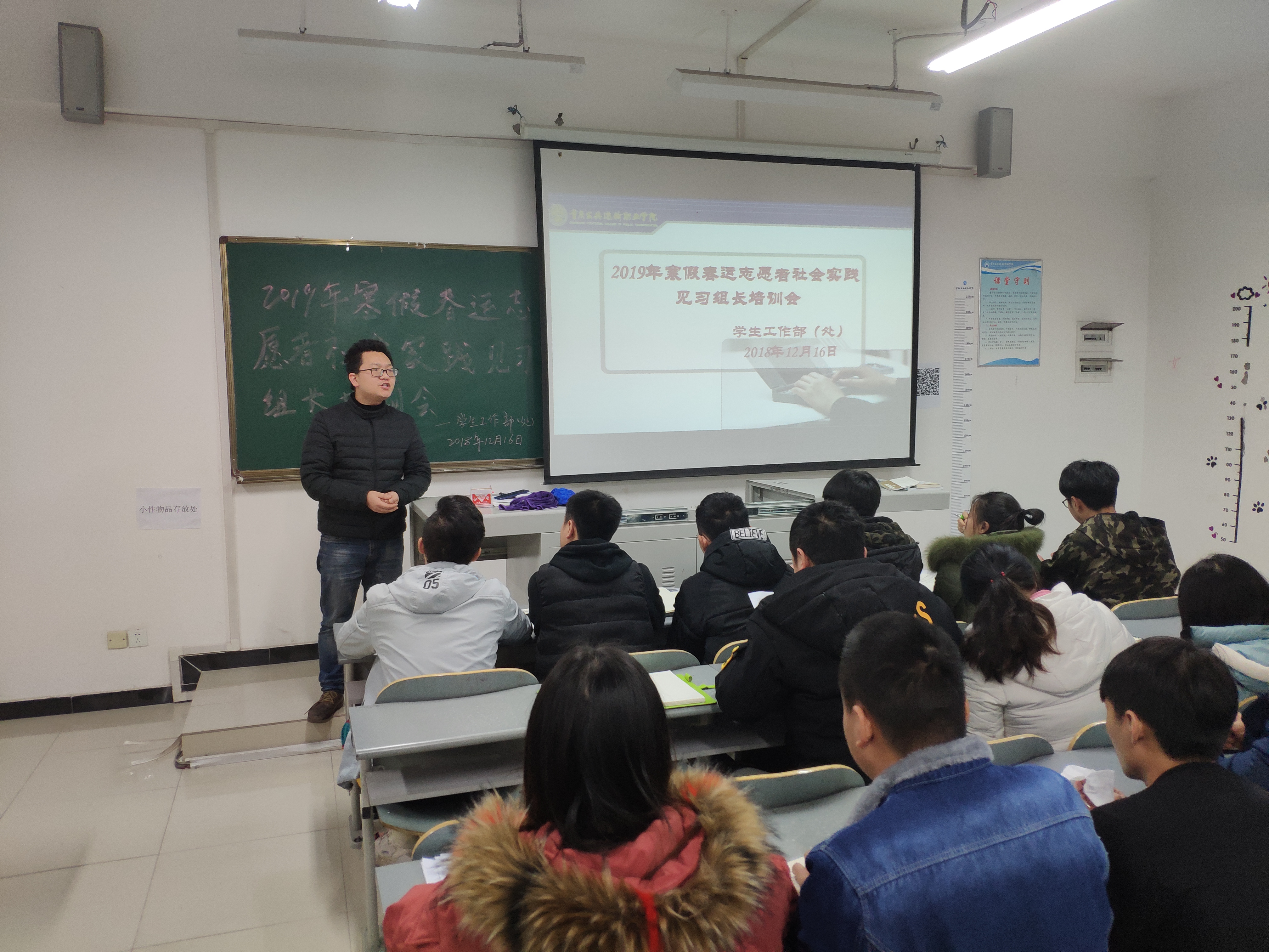 随着寒冬的临近,一年一度的寒假春运社会实践工作即将拉开序幕。为了春运社会实践工作的高效、有序开展;引导同学们可以在春运工作开启前可以尽快适应实践岗位,高效的完成社会实践岗位任务。学院按计划开展了为期4周的春运社会实践岗位见习工作,17日启程的时间将至,面对一幅幅新面孔加入我们的春运社会实践队伍,我们倍感欣喜。但与此同时,面对新同学的加入,在欣喜之余,我们也清醒地认识到,开展精细化的岗前工作培训,保障见习实践工作顺利推进,这是我们每位参与到春运社会实践工作的老师和同学们共同的期望。11月16日团委副书记彭余、学生处刘金飞、徐欢、苏荧、库国静参加了会议。根据本次春运社会实践个人工作分工,开展了学生见习组长、副组长、宣传委员见习工作岗前培训。