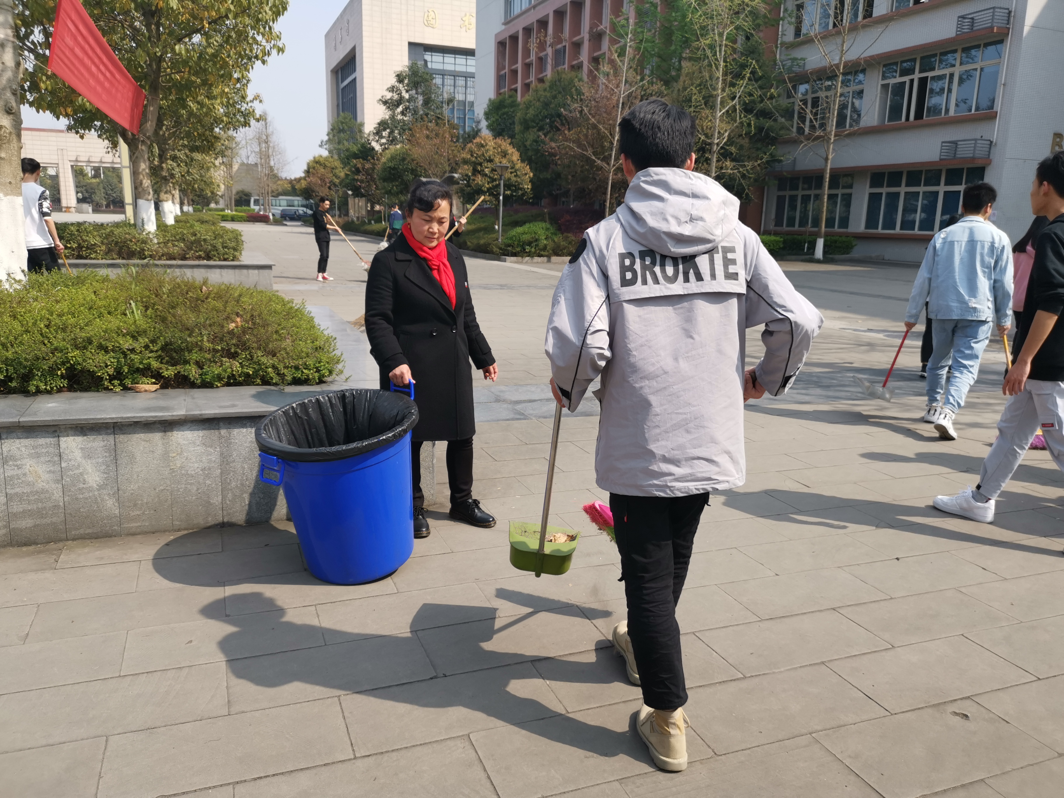在阳光下同学们认真清扫,良好的精神风貌为凉爽的春天增添了一份温暖。没过多久,整个校园焕然一新,在活动过程中,同学们热情洋溢的进行清扫活动,展现了学生阳光向上,精神饱满的良好状态。