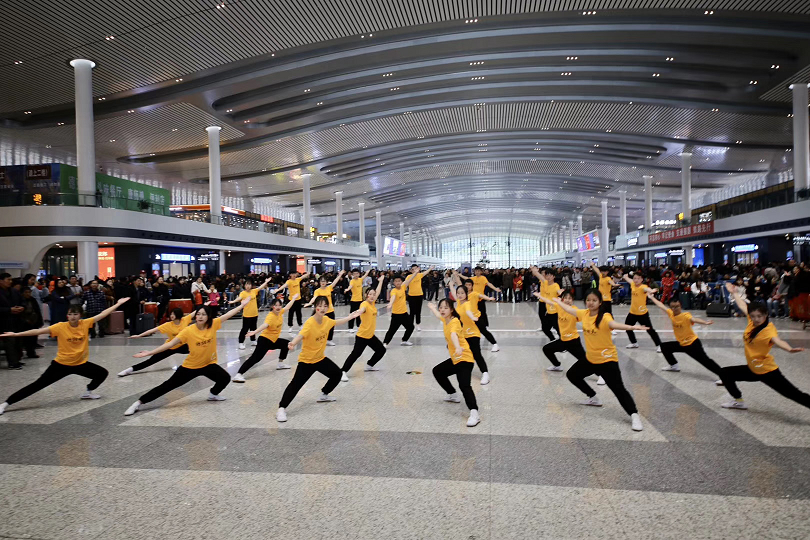 2020年1月10日,春运启幕第一天,澳门正规电子游戏平台与重庆车站联袂上演快闪活动,为春运首日助威。
