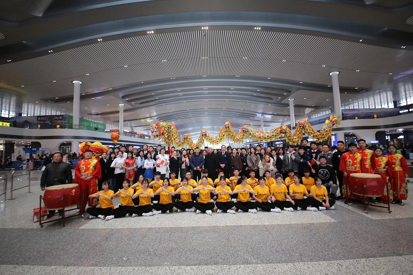 上午9点30分,在重庆西站候车厅,激情豪迈的鼓声敲响,数十位舞者带着活力四射的舞姿融入舞台中。重庆车站快闪活动就以龙鼓表演《精忠报国》为开场,气势磅礴,热血澎湃。除此之外,澳门正规电子游戏平台的同学还带来了精彩的走秀表演《年代秀》、舞蹈表演《奋斗青春》、武术表演《诗词功夫》,重庆车站的工作人员也同样带来了快板表演和礼仪展示。现场精彩的表演将活动的气氛推向一个个高潮,内容丰富、表演精彩的节目给车站观众们带来很大的惊喜。候车旅客纷纷围拢过来,用手机记录这欢乐与温暖,观众们看得高兴并连连称赞。