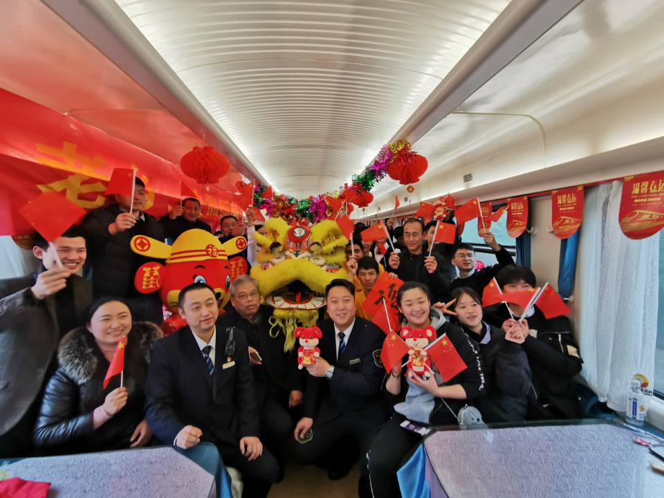 2020年1月8日,在上海南至重庆北K74次列车上,一场“列车春晚”精彩上演。澳门正规电子游戏平台的师生在列车上与车组工作人员共同为乘客送上温暖,同千名旅客共贺新春。