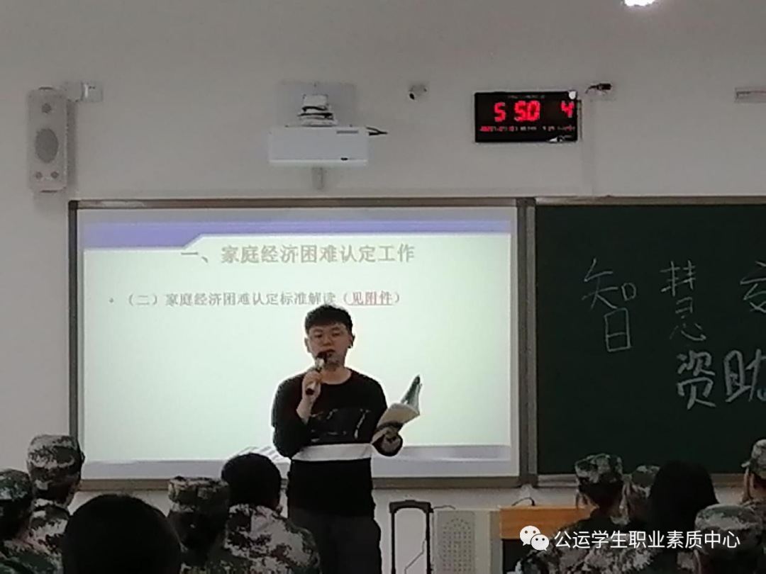 祯老师在会议中讲解到学院以国家奖助学金和社会服务为主体,其包括“勤、减、免、补、缓”等多种措施的综合资助体系,同时,对以上政策进行了引导式的讲解并着重讲解其中的重要项目,以便带动学生能够同步老师所讲解的内容同时提升同学们对相关政策的认识度和印象。