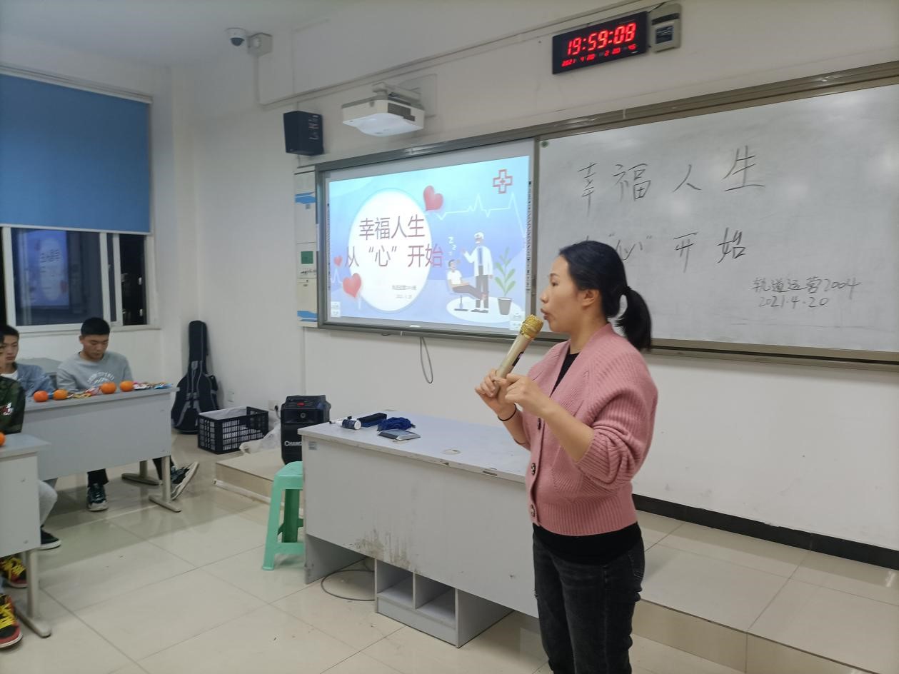 据2019年世界卫生组织披露数据显示,全球有超过3.5亿人患抑郁着近十年来患者增速约18% ,每年大概有100万人因为抑郁症自杀目前为止中国患抑郁症人数近1亿左右。在我国,抑郁症发病率约为3%~5%。因此。一个好的心情和积极向上的心态对现目前的大学生来讲非常重要。轨道运营2004班于2021年4月20日在A505教室举行了幸福人生,从“心”开始的主题班会,由辅导员欧娜老师组织,全体同学参与。