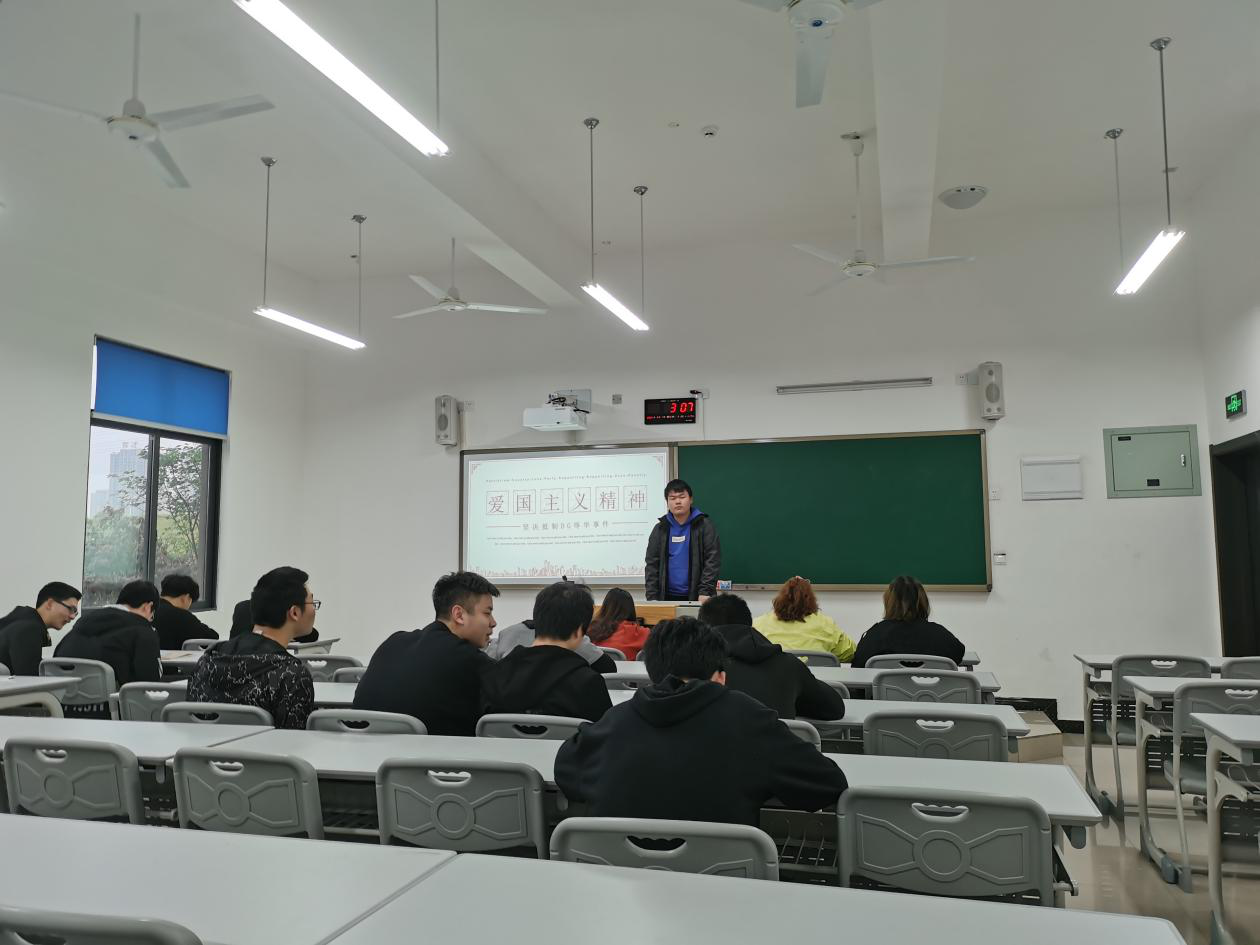 为大力弘扬爱国主义精神,传承中华民族传统美德,轨道车辆2013班陈新杰同学在每日品读中演讲爱国主义教育。由辅导员付灿老师主持召开。