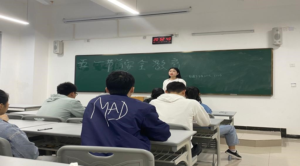 首先,辅导员付灿老师向学生阐述了五一劳动节的来源,号召全体学生热爱劳动,感恩父母的辛苦劳动与默默付出,激励学生主动分担家务。更要努力学习,培养学生劳动光荣的意识。然后,向学生强调假期安全意识。安全无小事,通过播放相关视频和案例分析的形式,传达防溺水安全、出游安全、交通安全等。最后,学生在假期中应做到规律作息,劳逸结合,假期过后,应及时到校。