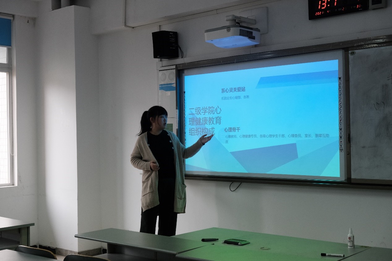 本次会议主要围绕着心理委员职责、心理健康教育组织构成、学院心理健康活动、心理测评与月度排查来讲述。作为班级的心理委员,职责是育人工作的桥梁,健康知识的宣传者,同学们心理健康的守护者。所以积极配合学院以及辅导员开展心理健康教育,组织开展心理健康活动,观察同学们的情绪变化以及帮助他们的需求,宣传正能量是当下心理委员的重要任务。