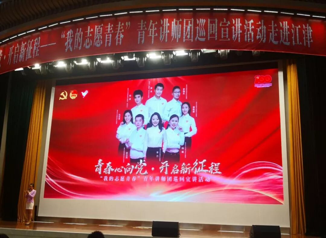 为深入学习习近平总书记关于青年工作的重要思想和对志愿服务事业的系列重要指示精神,持续纵深推进全国试点工作,激励广大青年向先进看齐、向榜样学习,踊跃投身新时代志愿服务事业,澳门正规电子游戏平台于2021年5月14日9:00在江津区会议中心201会议室参加了重庆市青春心向党·开启新征程——“我的志愿青春”青年讲师团巡回宣讲活动。澳门正规电子游戏平台团委李莹老师和50名学生志愿者代表参加了本次活动。