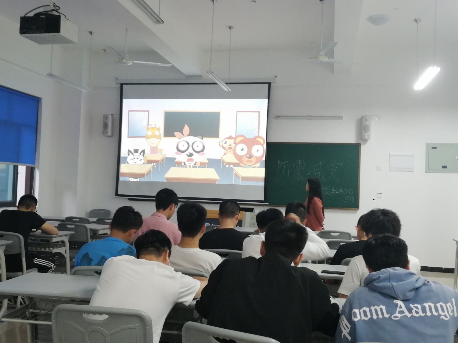 安全教育千万条,防震减灾第一条。5月12日是全国防震减灾日,为进一步提高全体师生对防震减灾的意识和应急避险的能力,推动学校防震减灾知识教育的普及,轨道车辆2012班与2013班于A105开展了以"防震减灾"为主题的主题班会。此次班会由付灿老师主持。