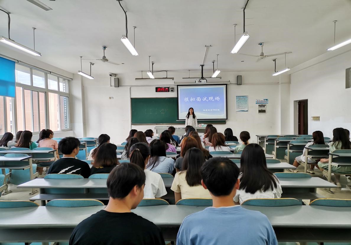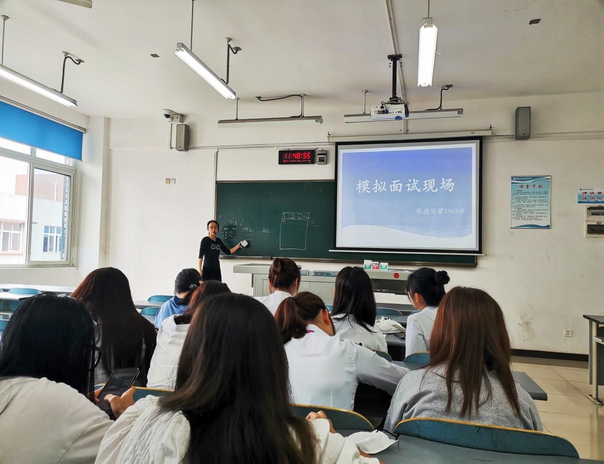 为让2019级同学们更好地掌握面试技巧,培养同学们在面试中的应变能力,提高面试心理素质,以便同学们能够在找工作的面试环节能够从容应对。5月28日上午10:30 分,运输贸易学院轨道运营1903班全体同学在教学楼B504开展了模拟面试活动。