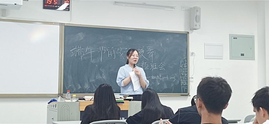 为了切实加强端午节期间的学生安全教育管理工作,提高学生的安全意识和抵御风险的能力,6月6日19:00点,智慧交通学院辅导员刁起萌在新校区A305召开了端午节前安全教育主题班会,智慧交通学院2020级智能交通、人工智能、城轨信号专业的全体学生参加。