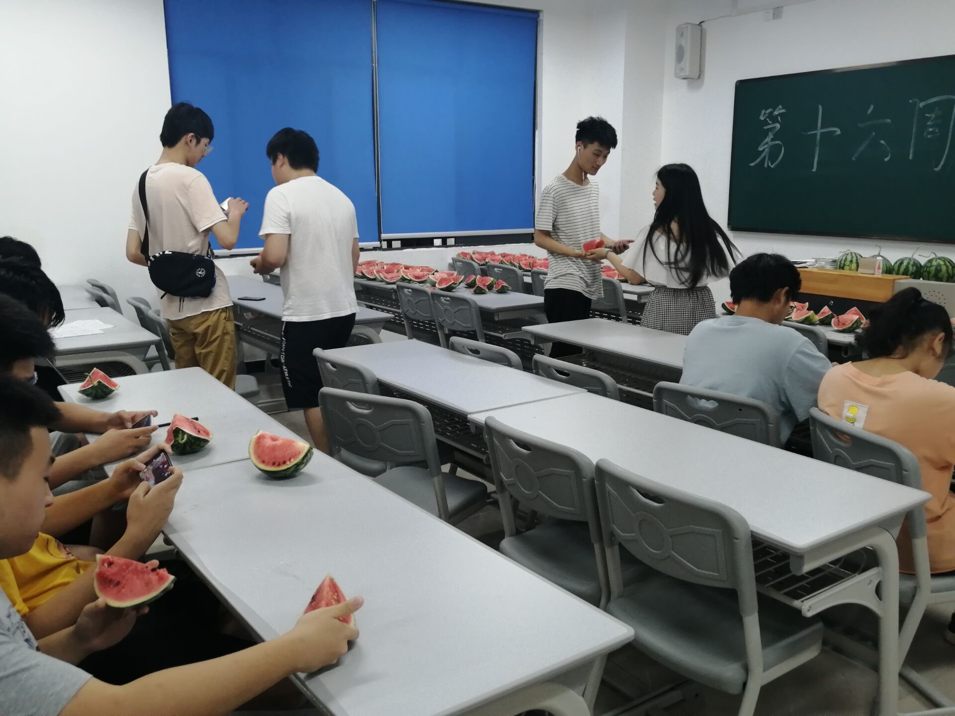 辅导员付灿作为这次活动的策划人策划了这次活动。因端午放假,所以活动首先进行的是返校班会。返校班会后付灿老师介绍了端午节的由来和习俗,并询问了同学们过端午节发生的故事。酷暑炎炎,作为同学们的辅导员和好朋友,付灿老师为同学们准备了西瓜为同学们解暑过节。希望同学们在这次活动中了解节日来源与习俗,享受假日。