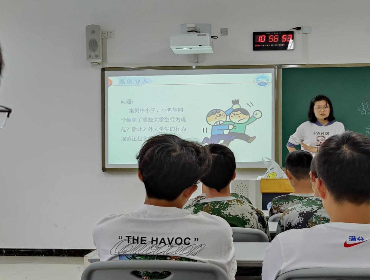 通过导入案例,辅导员解读“大学生行为规范准则”,以生动且真实的演讲“小故事”引出大学生在校期间的学习行为规范(课堂纪律与考试违纪作弊)、宿舍行为规范(归寝、私拉乱接、饲养宠物、贩卖推销物品、翻墙)、日常行为规范(打架、酗酒、网络贷款、赌博)等对应的违纪处分制度,告诫新晋学子有所为和有所不为,循循善诱令我们明白,正确的行为规范是学生学习、生活的根基,是同学们健康成长,走向社会的基础。而大学校园就宛如一个小型社会,身处在这样的环境之中,就不可能是“独自”的一个人。遵纪守法,严于律己的高要求,能帮助我们更好的与师长和他人相处,在社会的道路上走得更远。所以规范大学生活行为,就是在预演往后的人生。
