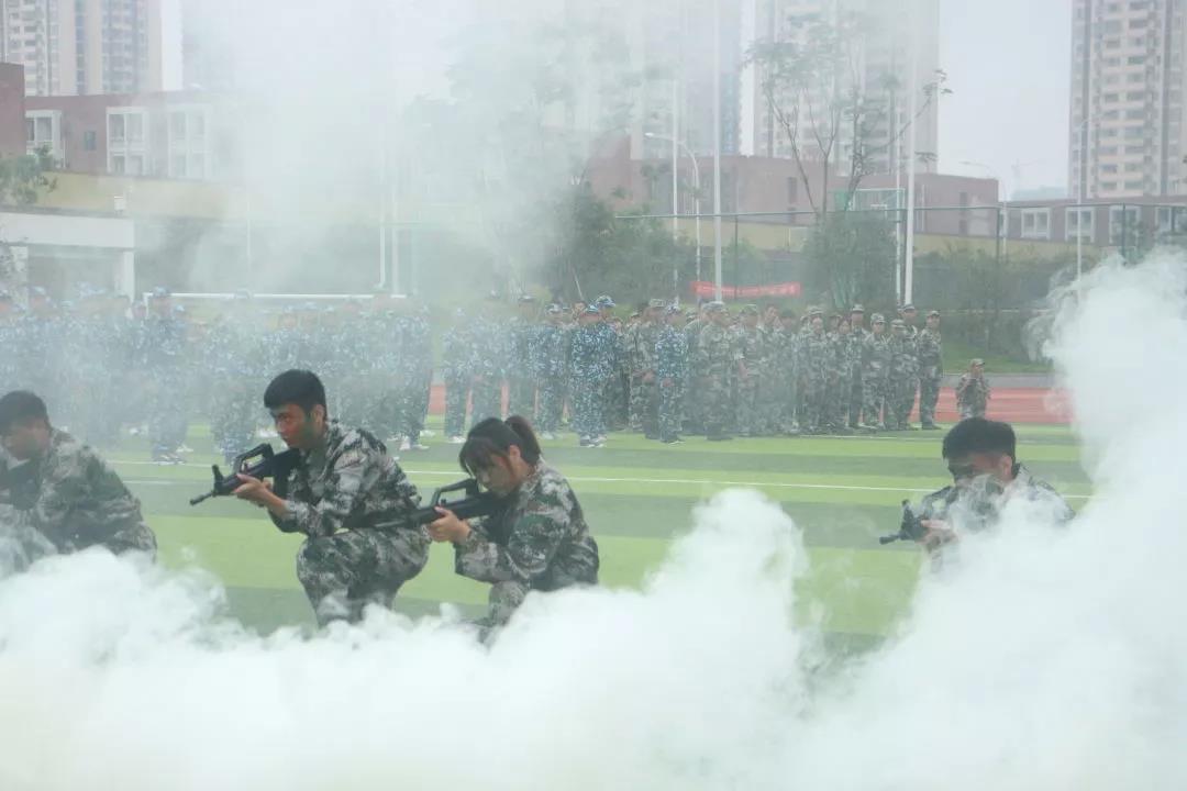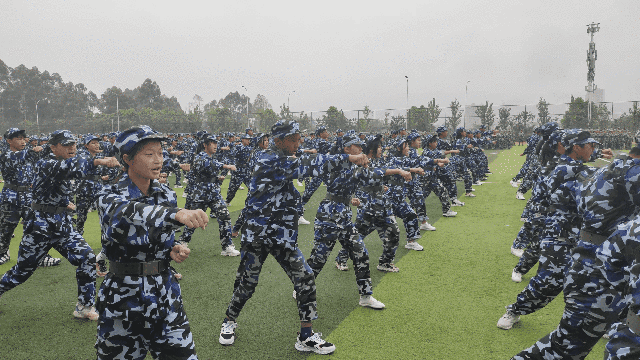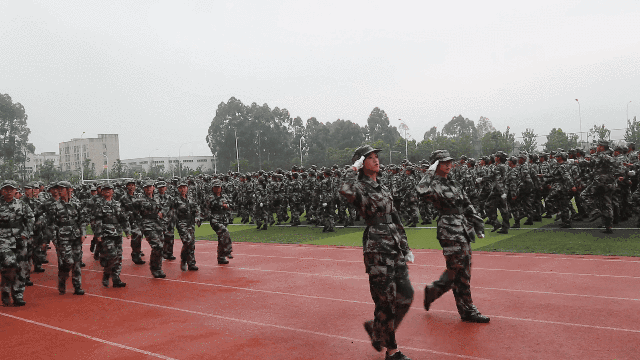 他们迈着铿锵步伐,口号响亮