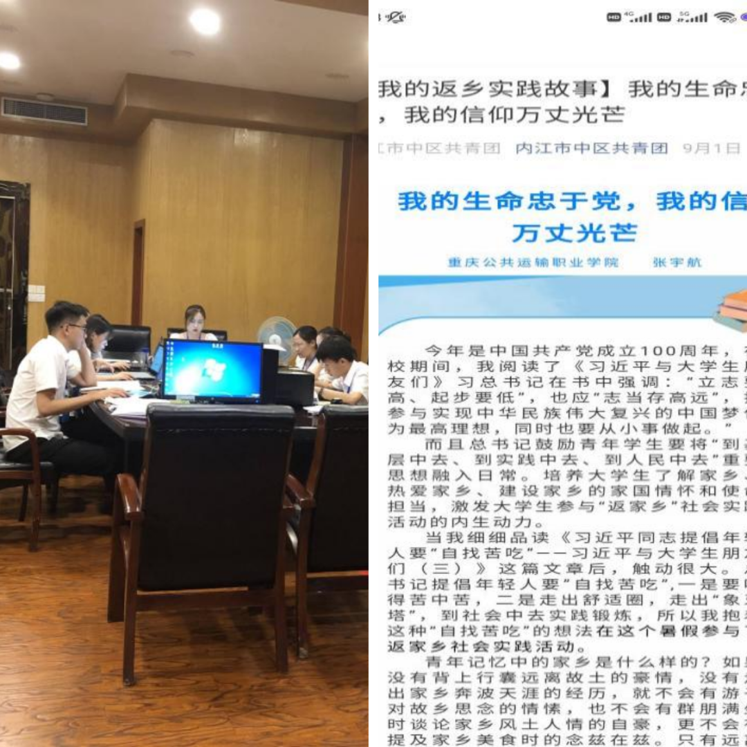 3. 2021年9月,社会实践文章“我的生命忠于党,我的信仰万丈光芒”被内江市中区共青团刊用。