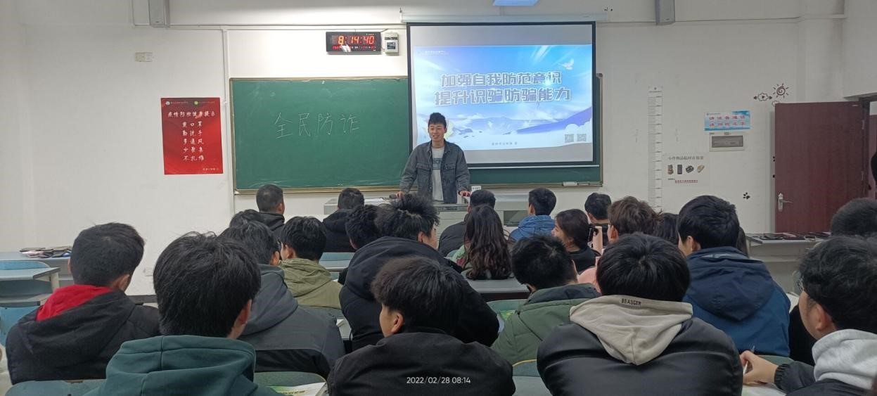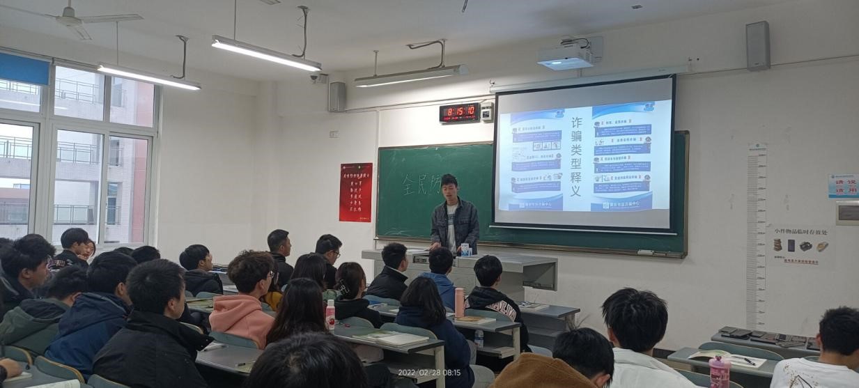 为加强当代大学生的自我防范意识,提升识骗防骗能力,轨道交通学院轨道车辆2102级于2022年2月28日8:00在主校区教学楼A506开展“护佑平安、全民反诈”主题班会。