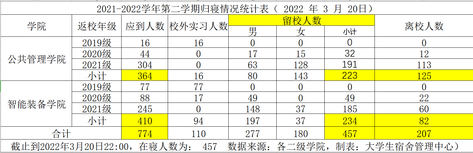 目前,智能装备学院留校学生234人、公共管理学院留校学生223人。因疫情防控、学生管理工作需要,新校区在智能装备与公管联合党总支书记张睿的带领下,胥迅、潘勇两位老师驻守学校管理学生,袁佐霄、袁昊、杨莉三位老师居家办公。抗疫封校以来,智能装备学院 公共管理学院全体辅导员全力以赴,一手抓防疫工作、一手抓特色工作。