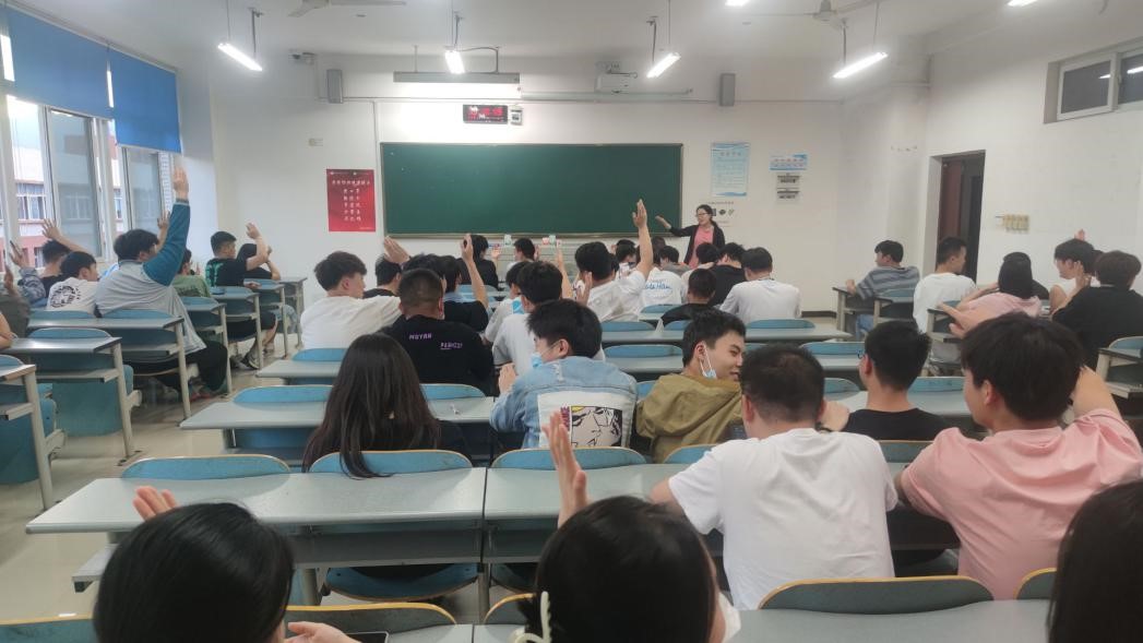 2022年5月4日晚19:10轨道交通学院动车检修2002、2001班在辅导员刘仙老师的领导下于主校区B508教室开展了“血魂感恩”主题班会。