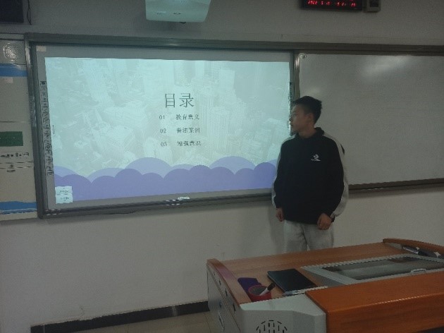 本次班会围绕教育意义、普法案例、增强意识三个部分展开。由班长郭坤带领同学们了解法律教育相关知识,加强法制教育宣传,增强学生的自我保护意识。