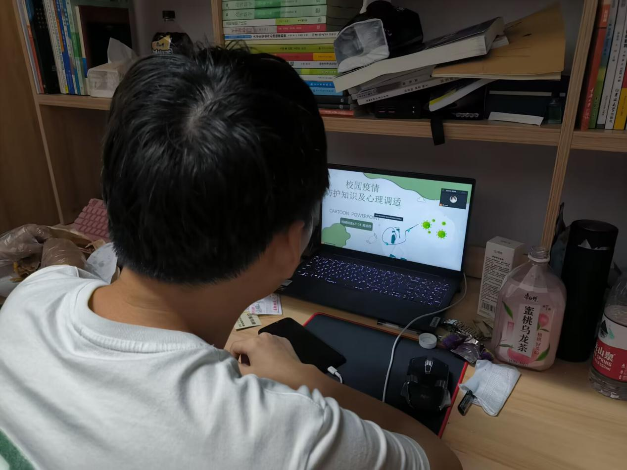 本次班会由心理委员阳林宏对班会进行主讲,从校园内防控指南、返校前如何防控、返校后如何防控、校园防疫小口诀等方面为同学们讲解,让同学们逐渐接受配合学校的防疫工作、调适心理。