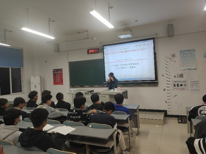 为激励同学们创优争先,涵养优良学风,培育个人综合素质,轨道交通学院2202班于2022年11月6日晚7点在教学楼B203教室开展了评优评先和奖学金政策宣讲会。