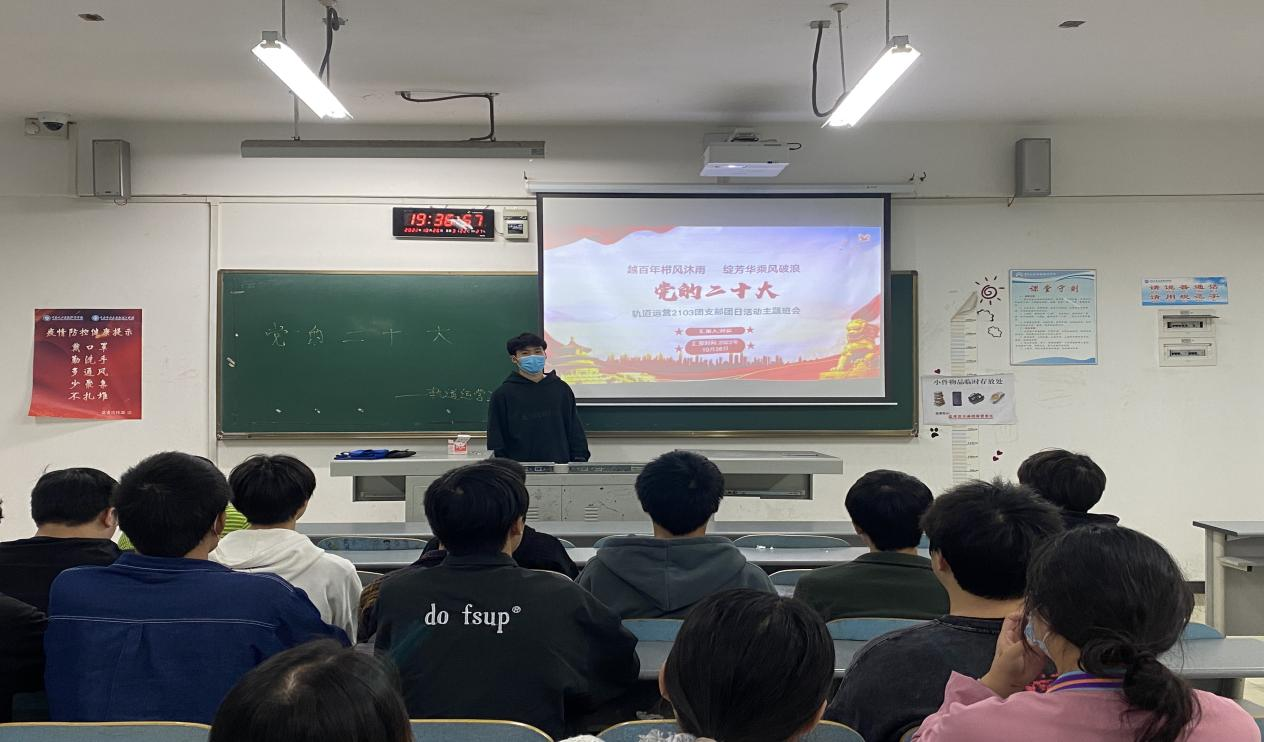 轨道运营2103班组织开展了“党的二十大”主题班会。班会从党的二十大召开的主题开讲,共同学习了马克思主义中国化时代化新境界,新时代新征程中国共产党的使命任务,成长规划展新风等几个方面。