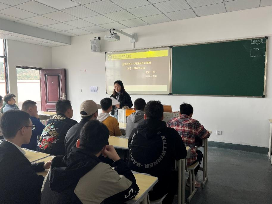 为进一步加强学风建设,帮助同学们掌握良好的学习方法,及其更好的学习专业知识,提高自身的竞争实力。2022年11月6日上午10:30,司机订单班开展了“重庆十八号线司机班返校班会”,对本周学习情况的总结及校园生活的汇报。