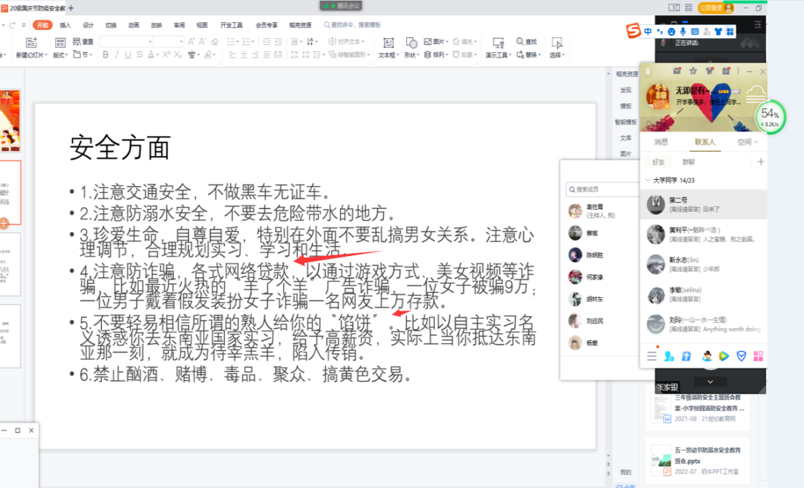 为提高对校园网贷的认识,增强电信诈骗防范意识,共同营造良好的校园网络环境。2022年11月25日,辅导员利用线上和线下结合方式,组织开展了“远离校园网贷,防范电信诈骗”主题宣讲活动。