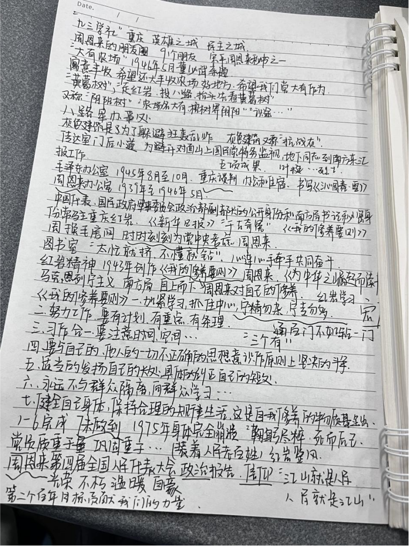 学员们聆听了微党课《我的修养要则——周恩来》,对学习方法、宣讲方法等进行了交流讨论,通过本次学习,宣讲团成员从革命先辈的行事准则来领悟作为新时代的青年们应当如何传承和弘扬红岩精神,让红色基因生生不息、代代相传。