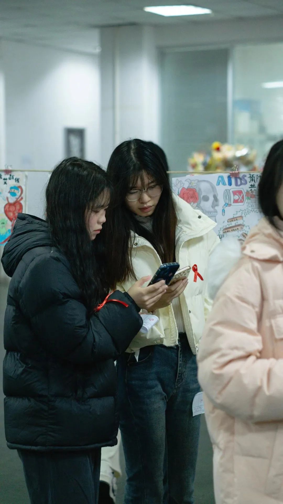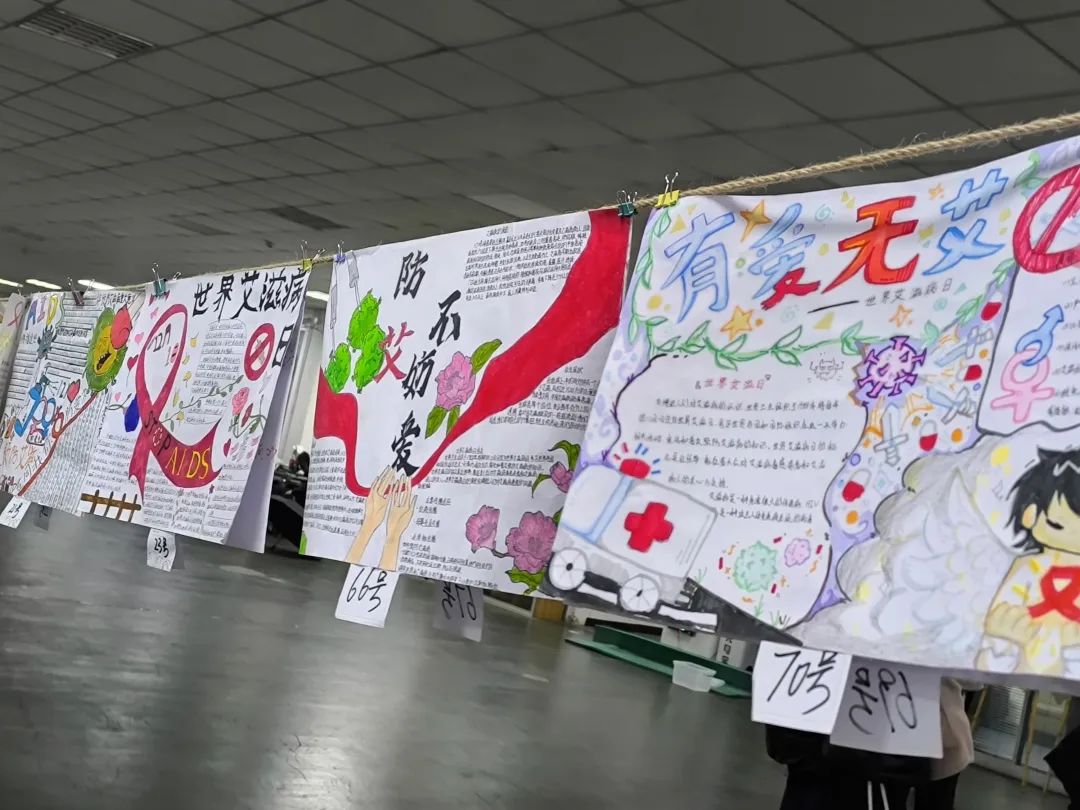 通过"防艾"主题手抄报作品展览,向同学们普及艾滋病防控知识,活动现场同学们通过扫描投票二维码为自己心仪的作品投票!