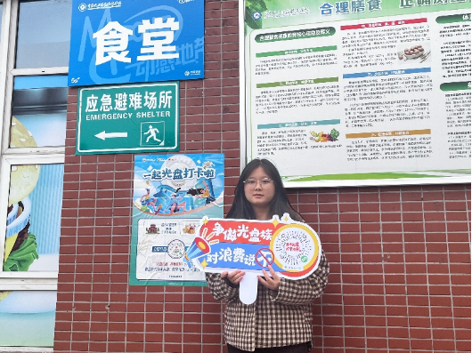 近段时间我加入到光盘打卡的队伍中,每天吃饭后光盘,进行光盘打卡。光盘行动,让我深刻反思了对食物浪费的问题,我开始珍惜每一口粮食,尽可能不浪费,光盘行动提醒我,每一粒米饭、每一片菜叶都是辛勤劳动的结果。作为新时代的大学生,节约粮食、文明进餐是我们义不容辞的责任,光盘行动绝不是简单的说说而已,而是无数个每天的坚持。吃光自己盘子里的食物,不但给环境减少了污染,更体现了我们的勤俭节约,不浪费粮食的传统美德。不剩菜不剩饭,接力成为光盘一族,拒绝任何粮食浪费,让光盘成为标准,让节俭成为习惯。